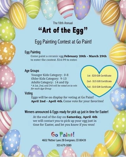 The 18th Annual “Art of the Egg” ceramic egg painting contest is going on now at Go Paint!